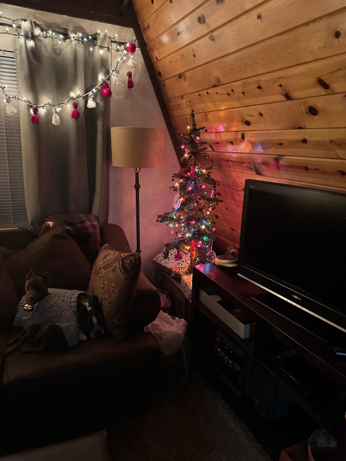 The past few Christmases have been rough. Christmas 2022 was very sad, when on the Eve our last chihuahua died of heart disease complications next to our bed. 2023 was after Liz’ chemotherapy regimen began and the pain and fear limited our activities. She also proclaimed that we would not be putting up our outside decorations, which I did not object to, but the interior of the house still looked like Christmas threw up all over our living room. And this year, well, you can guess why I was dreading this year. I only erected our non-traditional tree, three wreaths, and one lighted topiary, which were a small selection of Liz’ favorite decorations. The pillows and swags, quilts and miniature santas remained in the barn. The lights and the art, snowflake holiday card holders remain packed away in boxes, never seeing the light of December days. I was just not feeling it and refused to buy in this year.